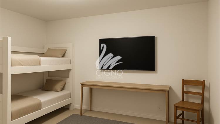 Second bedroom, ideal for guests or family use, with custom-made bunk beds.