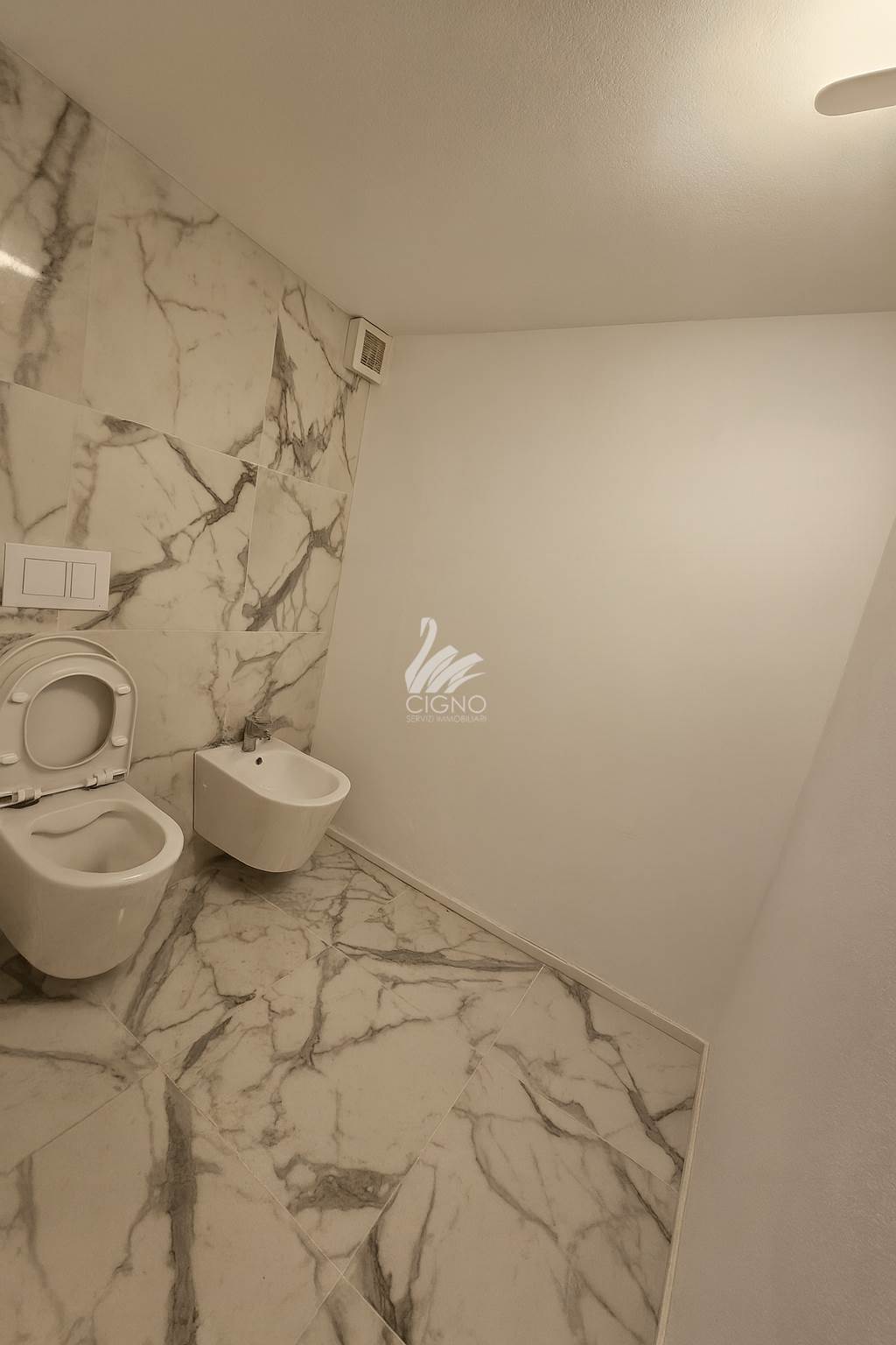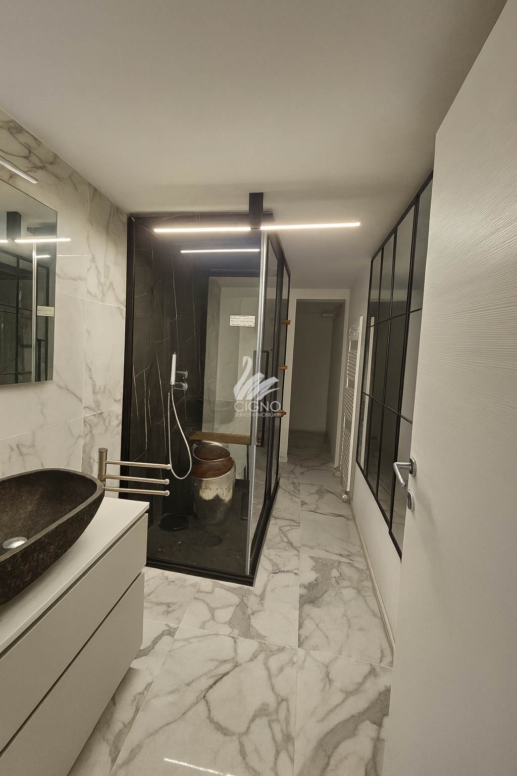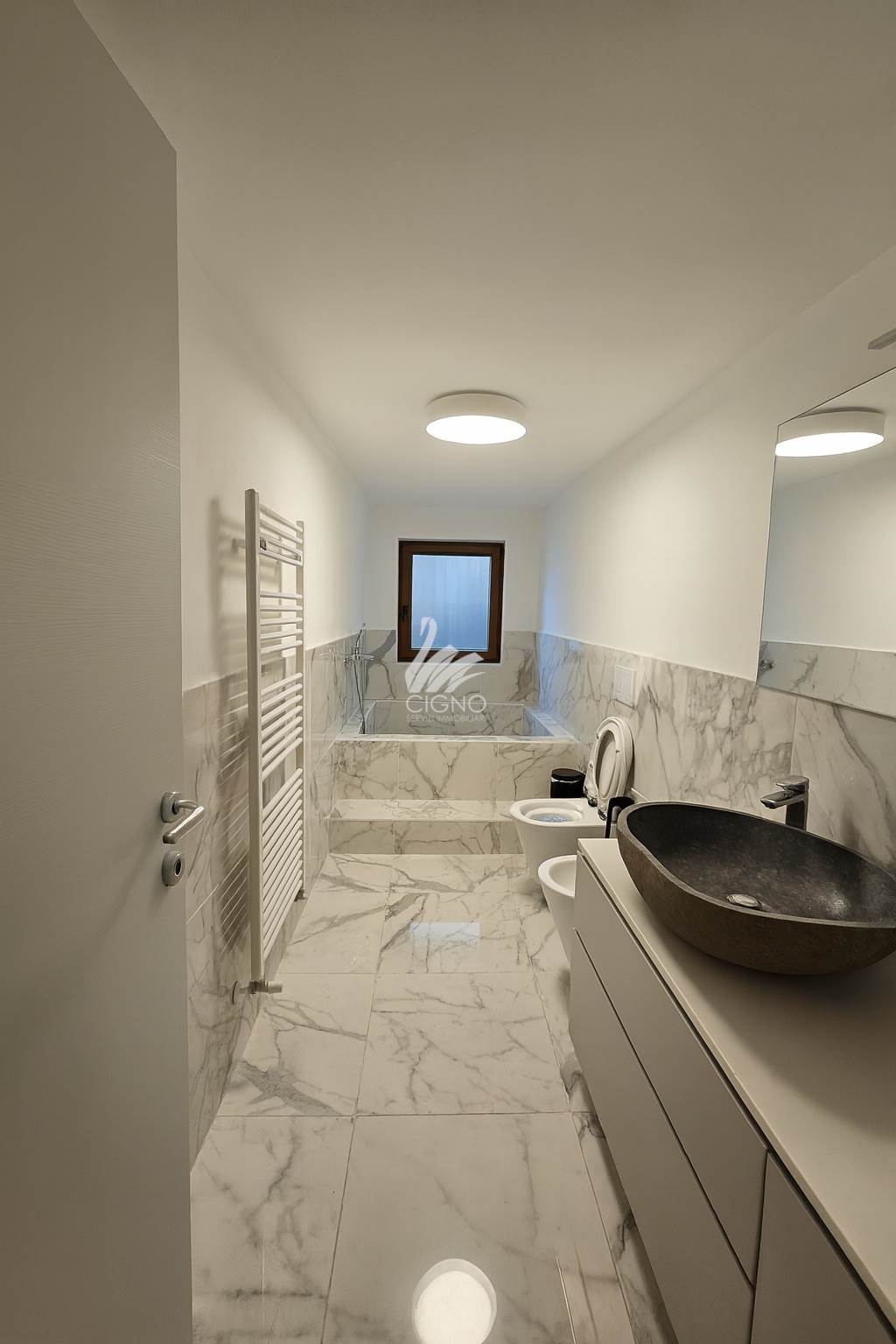 Completely new bathrooms, featuring marble-effect porcelain stoneware and designer fixtures.