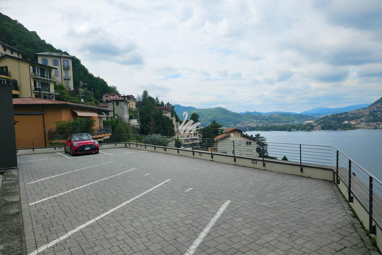 a panoramic lake view, fully renovated interiors delivered turnkey, four private parking spaces, and a high-quality restoration of the building façade.