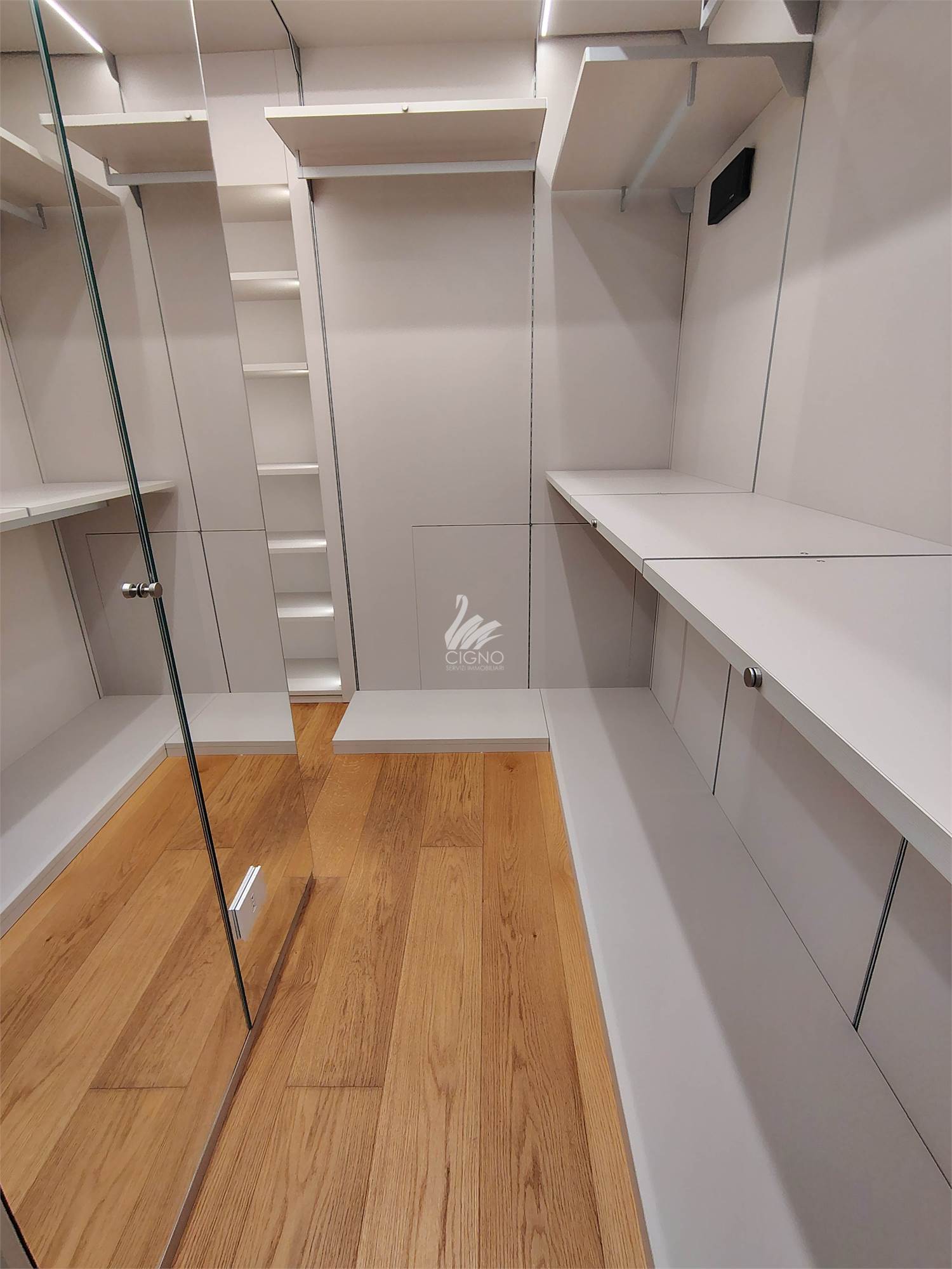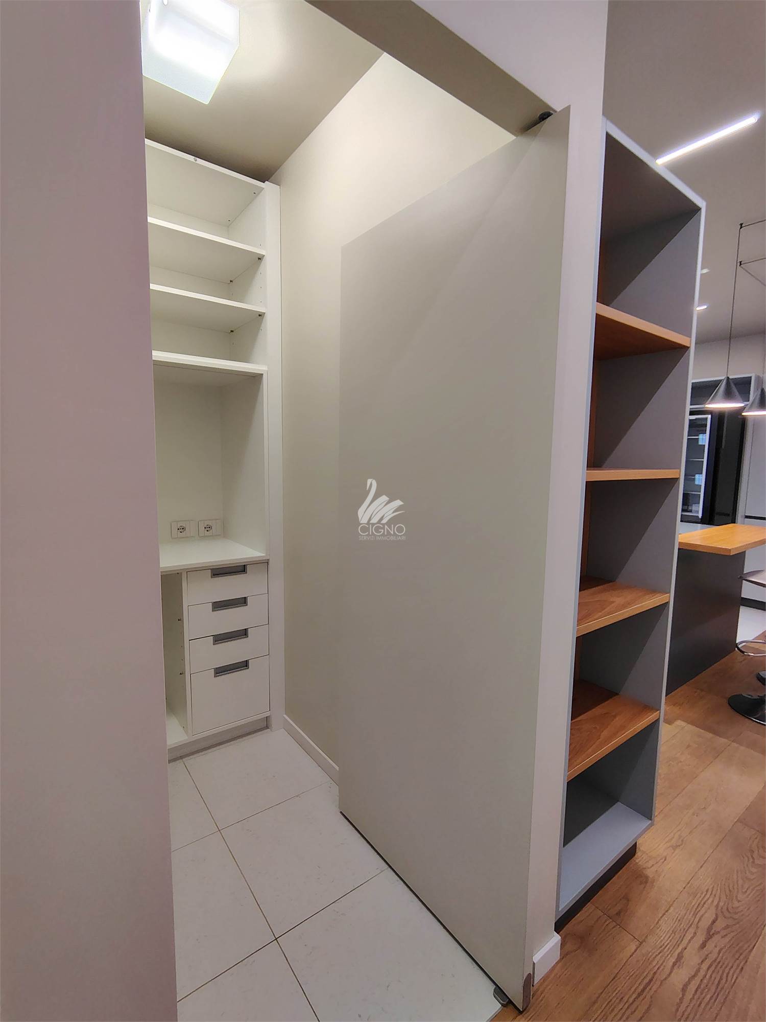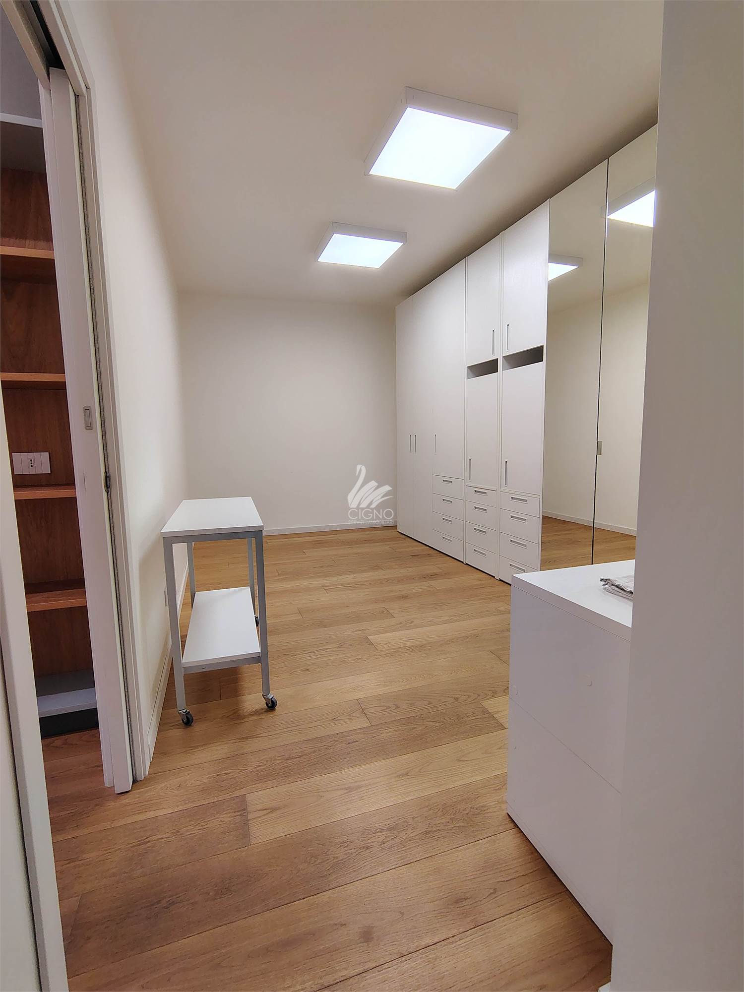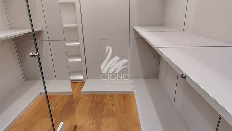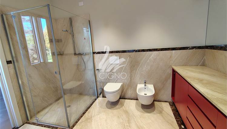 L’unità principale presenta ambienti ampi e perfettamente distribuiti: grande soggiorno, sala da pranzo dedicata, cucina abitabile già arredata con zona dispensa, due camere matrimoniali entrambe con bagno ensuite e cabina armadio, bagno di servizio per la zona giorno, ulteriore bagno a servizio della cucina e dei locali tecnici, locale guardaroba e magazzino. Una spaziosa lavanderia/stireria funge da collegamento tra le due unità.