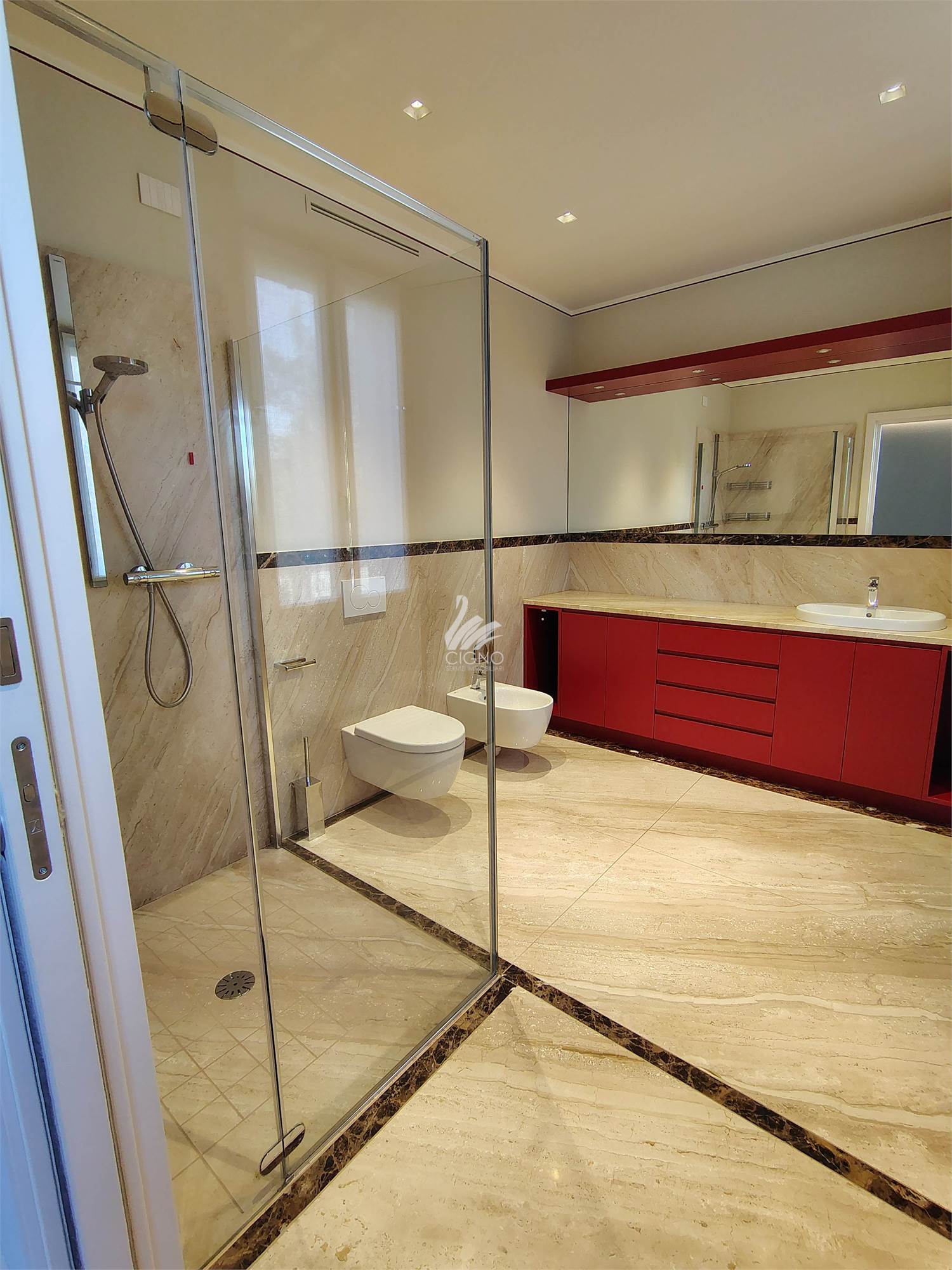 In una villa d’epoca finemente restaurata proponiamo in affitto un appartamento pari al nuovo, caratterizzato da finiture di alto livello e da una dotazione impiantistica completa: illuminazione full LED, parquet in tutte le stanze, microcemento in cucina, impianto termoautonomo, raffrescamento e ventilazione meccanica controllata per un comfort abitativo superiore.