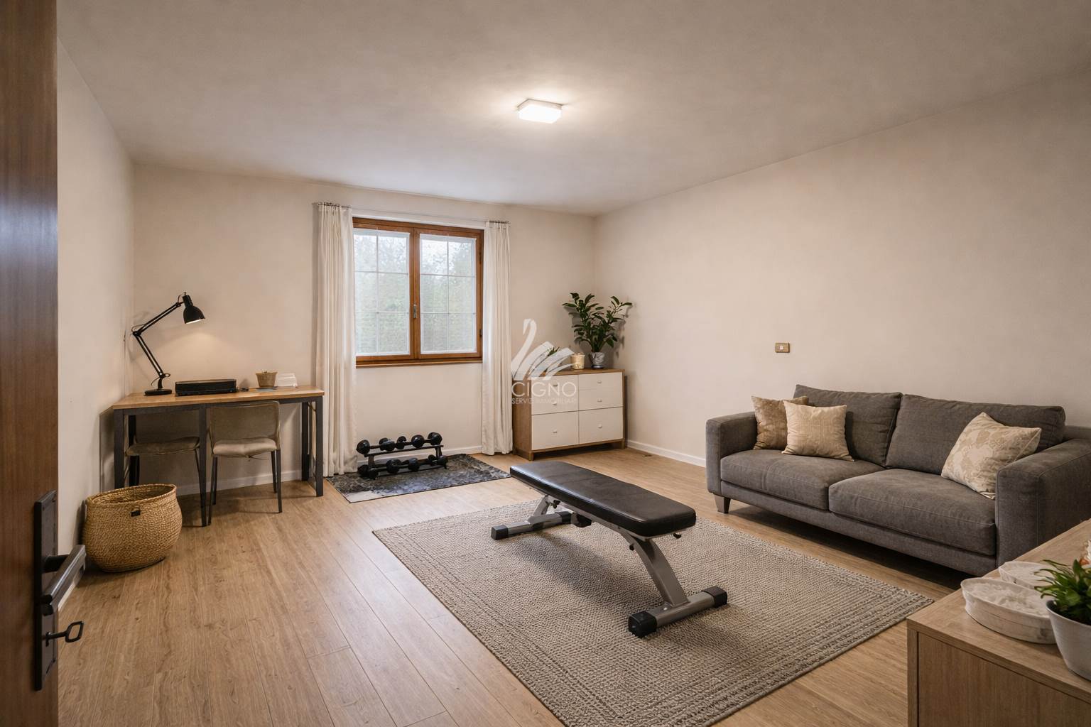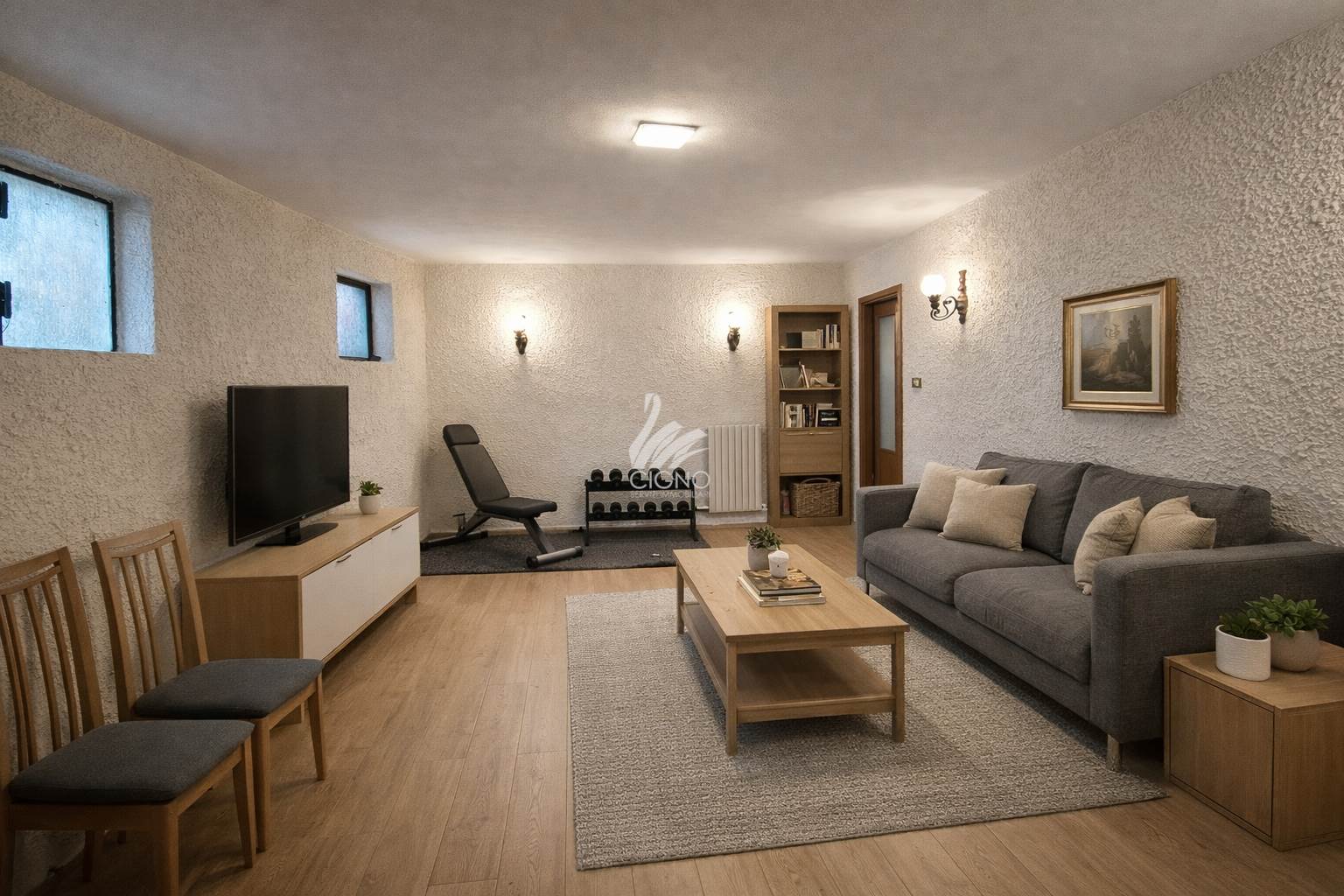 Al piano interrato troviamo una grande taverna libera su due lati , ulteriori due locali accessori ideali come palestra o locali hobby, oltre a un box doppio in lunghezza.