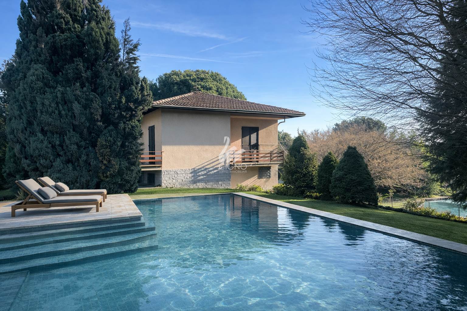 La villa è circondata da un ampio giardino privato di circa 2.000 mq, perfetto per chi cerca privacy, spazi all'aperto e tranquillità.