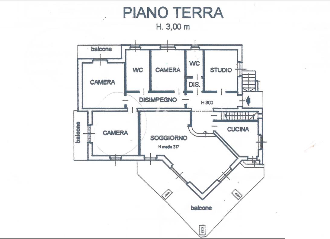La proprietà, di circa 270 mq, si sviluppa al piano principale con ingresso, luminoso soggiorno con accesso all' ampio terrazzo, cucina abitabile, disimpegno, tre camere da letto, studio e doppi servizi.