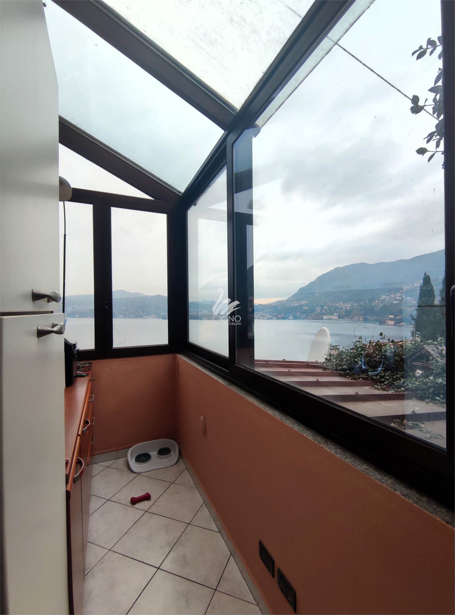 Composizione: Ampio soggiorno con accesso diretto al terrazzo vista lago, cucina abitabile, 3 camere da letto, 2 bagni.