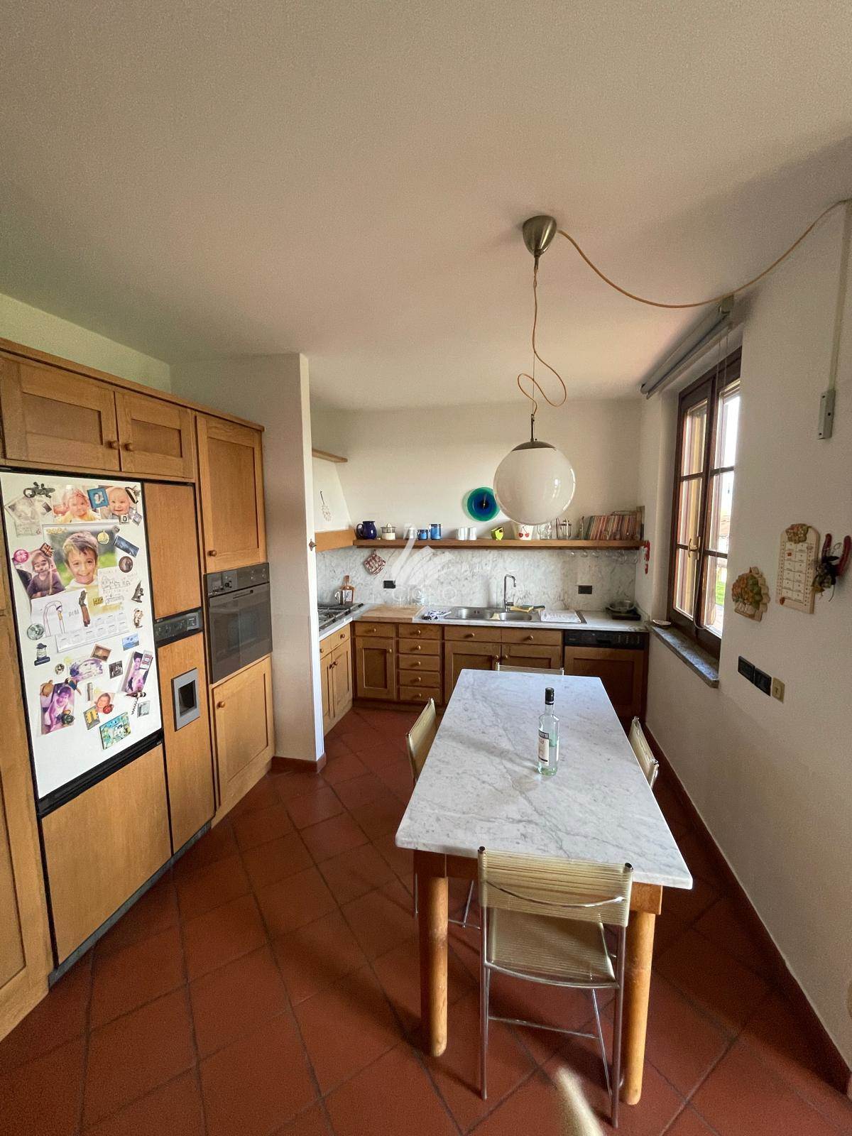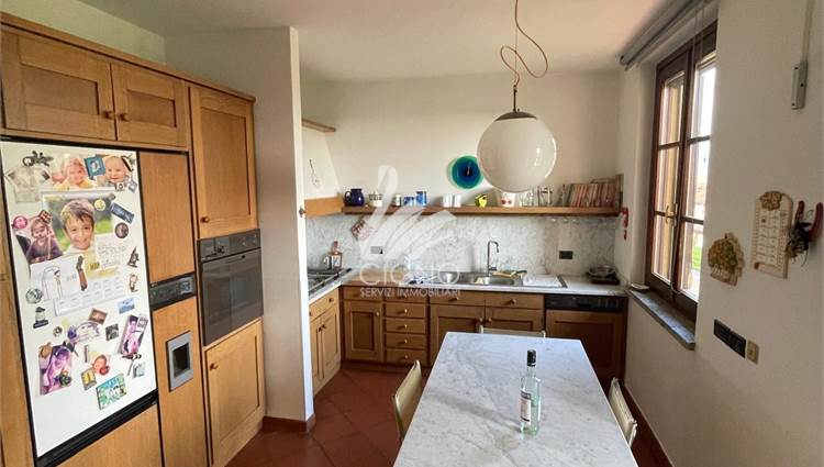La cucina abitabile, separata e funzionale, si integra perfettamente nella quotidianità della casa, mantenendo al tempo stesso eleganza e praticità.