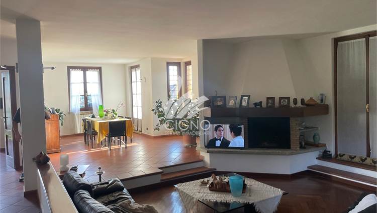 Il grande soggiorno di rappresentanza, con affacci aperti verso l’esterno, è il cuore della casa: uno spazio ideale per ricevere ospiti, vivere momenti conviviali o semplicemente godersi la tranquillità del contesto.