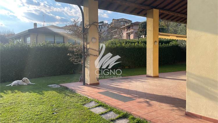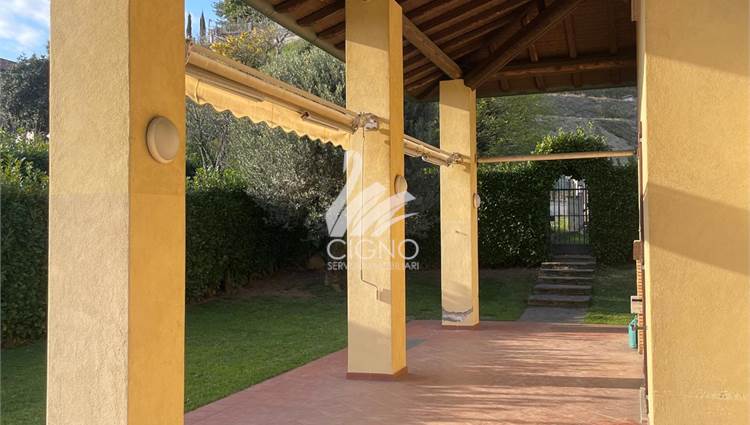 La villa si apre su un elegante portico coperto, perfetto per vivere l’esterno in ogni stagione, tra pranzi all'aperto, relax e momenti conviviali.